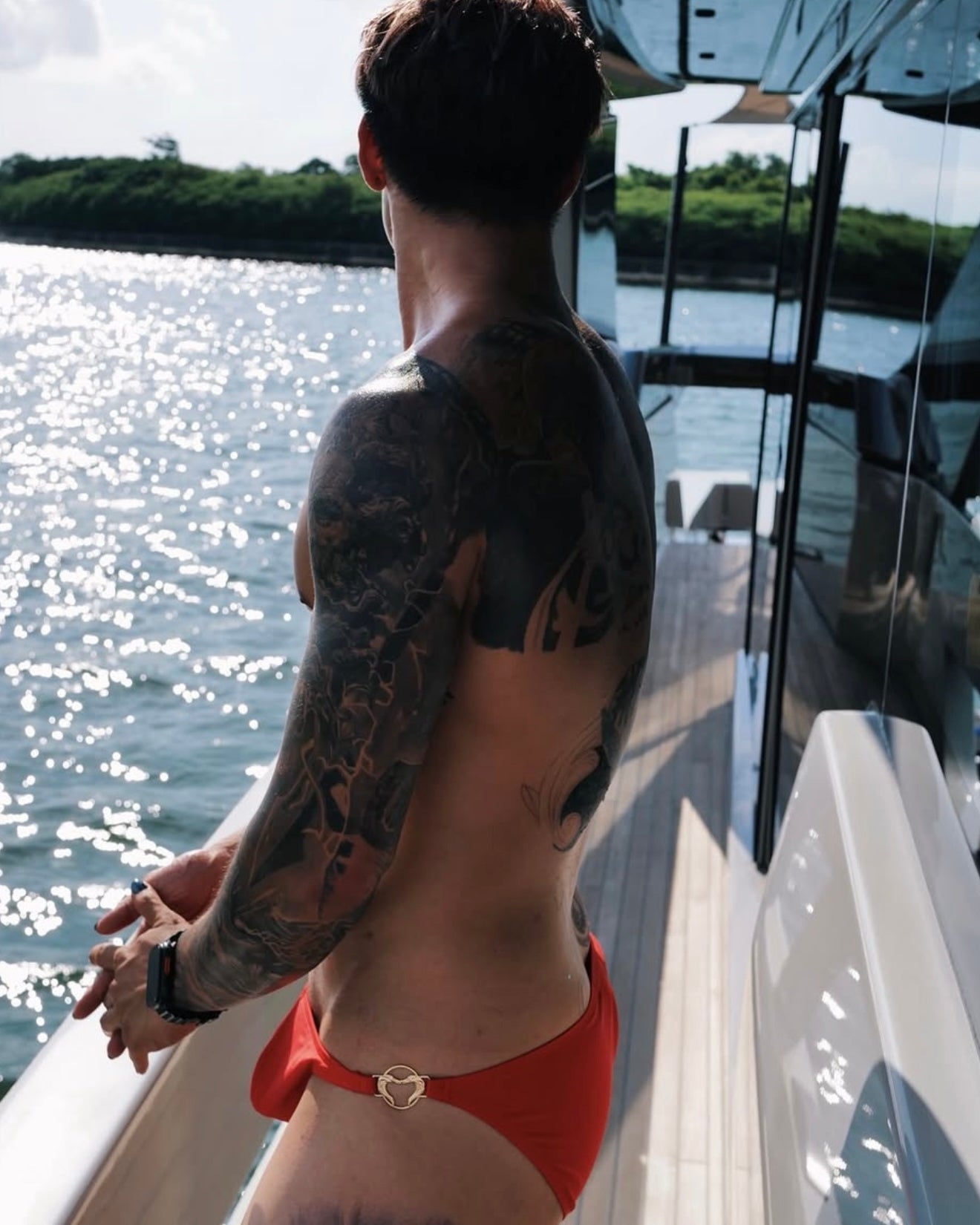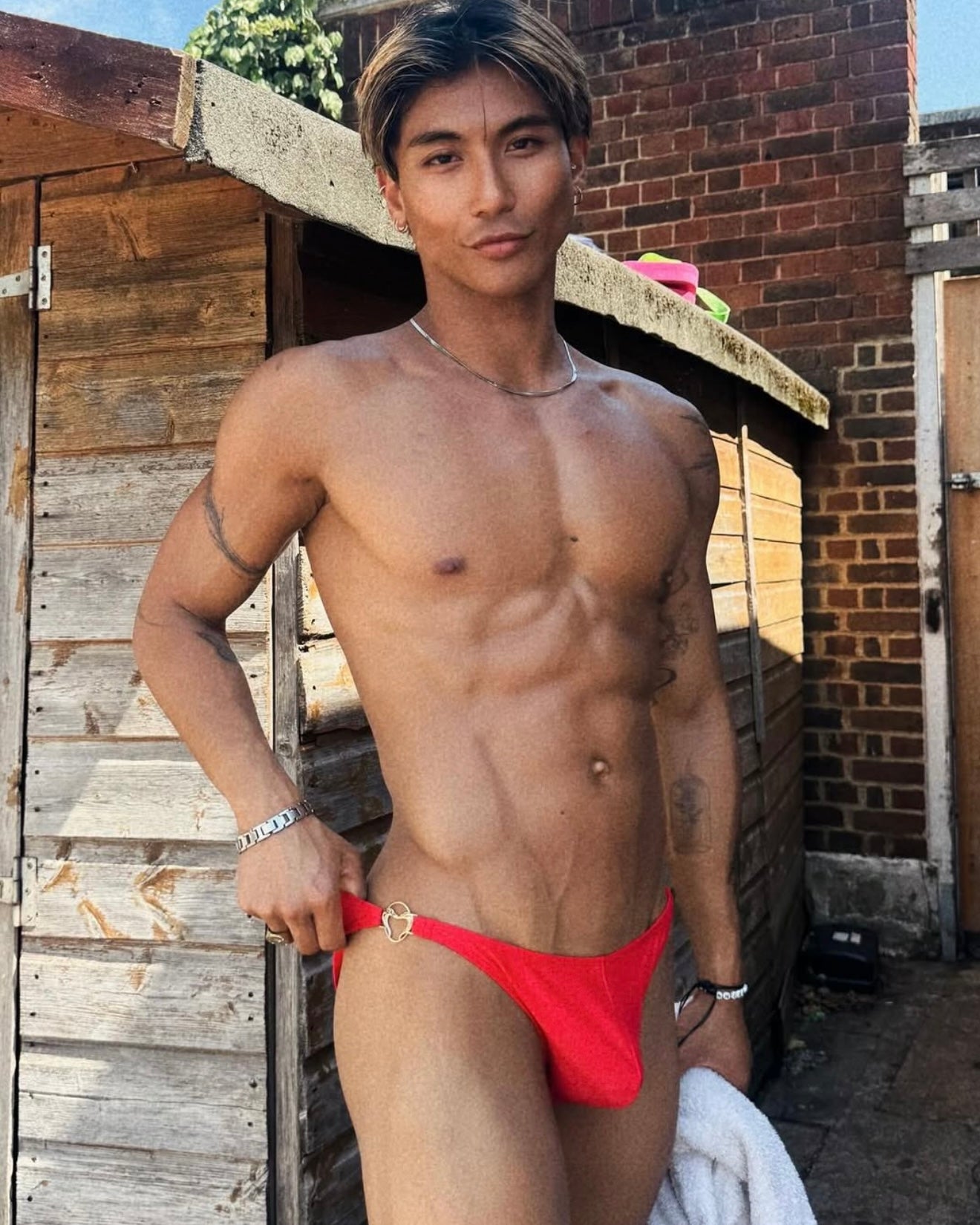 Avec sa coupe ultra-échancrée et ses anneaux métalliques dorés au niveau des hanches, ce slip de bain bikini est conçu pour ceux qui veulent se démarquer avec élégance et audace.